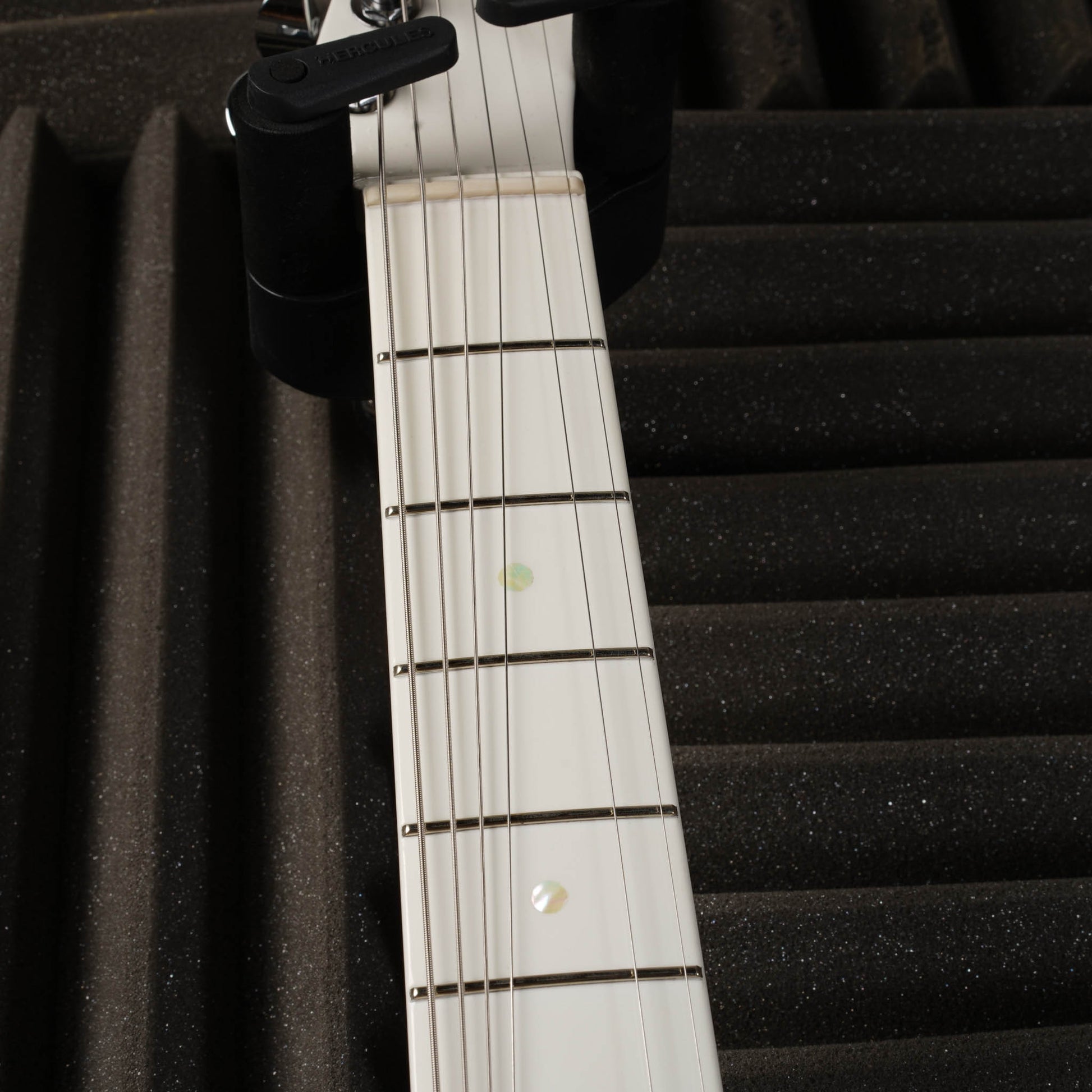 SILENT SIREN, an indispensable figure in the Japanese girl band scene, has finally released its signature model guitar in the Made in Japan line. This is a completely original model designed and supervised from scratch by the vocalist and guitarist Suu to realize her ideal Telecaster. The entire surface of the neck and fingerboard is painted in white, while the light violet lines reminiscent of the Thinline model gives it a unique presence. Equipped with Vintage Single-Coil Tele® neck and a Shawbucker bridge pickups, the HS configuration creates the ideal sound for Suu.