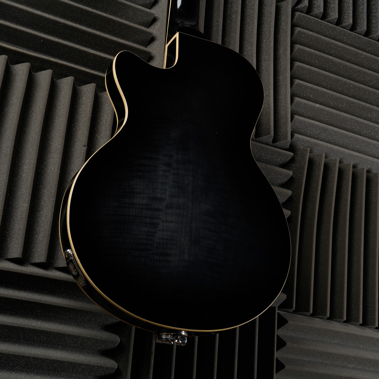 Finish: PUR lacquer (polyester used on sparkle, pearl and pearloid tops). Back and sides trans-black, except for special models.