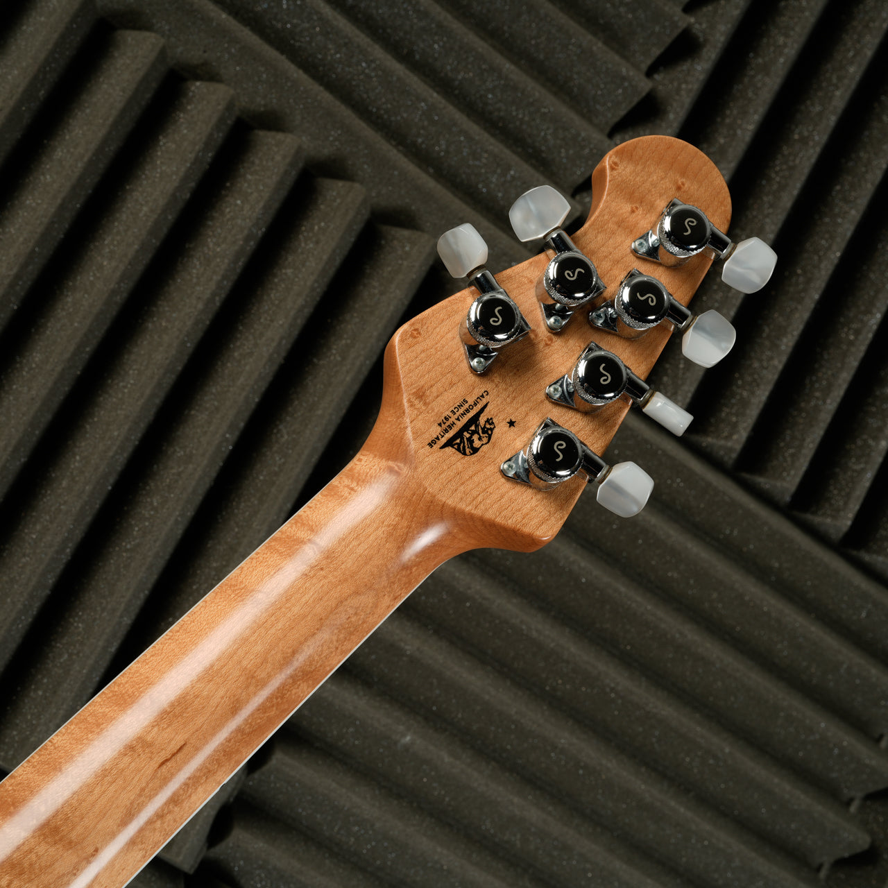 The Music Man Valentine is a truly versatile guitar, featuring a Music Man custom wound single coil at the bridge and a humbucker at the neck; you get a really nice of balance of tones, great for adding texture and flavour. With a gain boost on the volume pot you can bump up for solos and lead licks, it's a great feature that will massively benefit the gigging musician. The tone control doubles up as a coil-tap to split the humbucker and provide more glistening single coil tones.