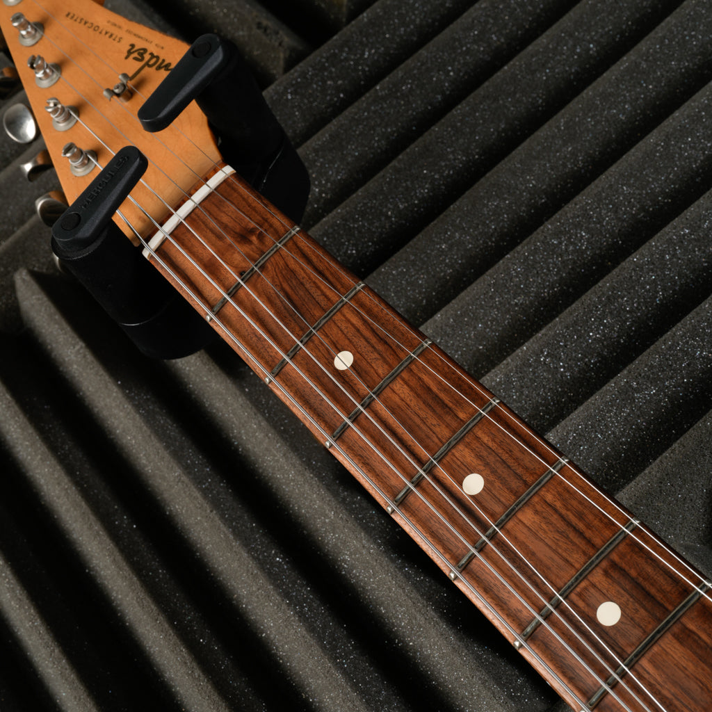 The CME Exclusive Fender Road Worn 1960s Stratocaster is the spitting image of the real thing, outfitted with period-correct components, USA-made Pure Vintage ‘59 Strat pickups, and CME Exclusive finishes like Vintage White, Daphne Blue, and Candy Apple Red, each pulled from the pages of history and made to look as broken in as they feel. Condition is excellent with very minimal signs of use, comes freshly setup with 10-46's in original gig-bag.