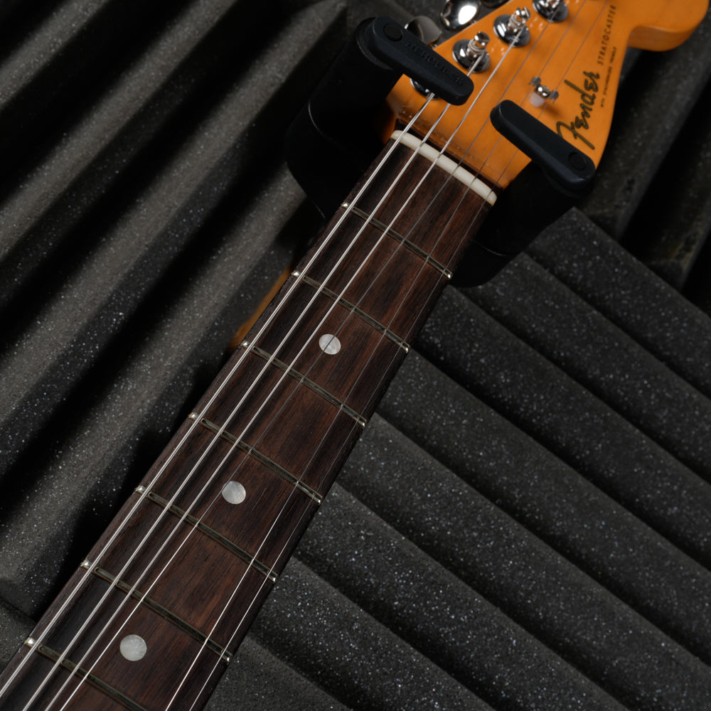 The version of Coma recreated in the Fender® Stories collection represents the guitar as it exists now. Electronics include custom-designed ML Ultra Noiseless Strat® neck-and-middle pickups and a custom Wide Range humbucking pickup in the bridge position. Hardware includes a 6-screw vintage-style Stratocaster tremolo with a cold-rolled steel block, a custom ML-spec neck, Fender ClassicGear™ tuning machines and the signature faded red satin lacquer body complete with a Floyd Rose® route. The Michael Landau Coma Stratocaster wears its rich history on full display, truly representing a vital artist that's always in transition. Included in the custom Coma-embroidered hardshell case are a "Coma" sticker set, custom strap and a Coma booklet written by Michael himself.
