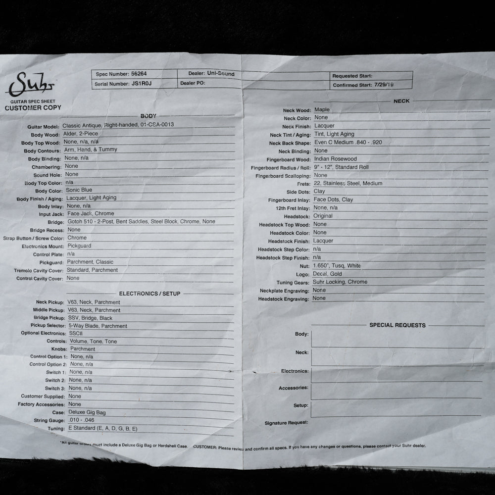 Suhr Classic S Antique HSS with Rosewood Fretboard 2019 - Sonic Blue